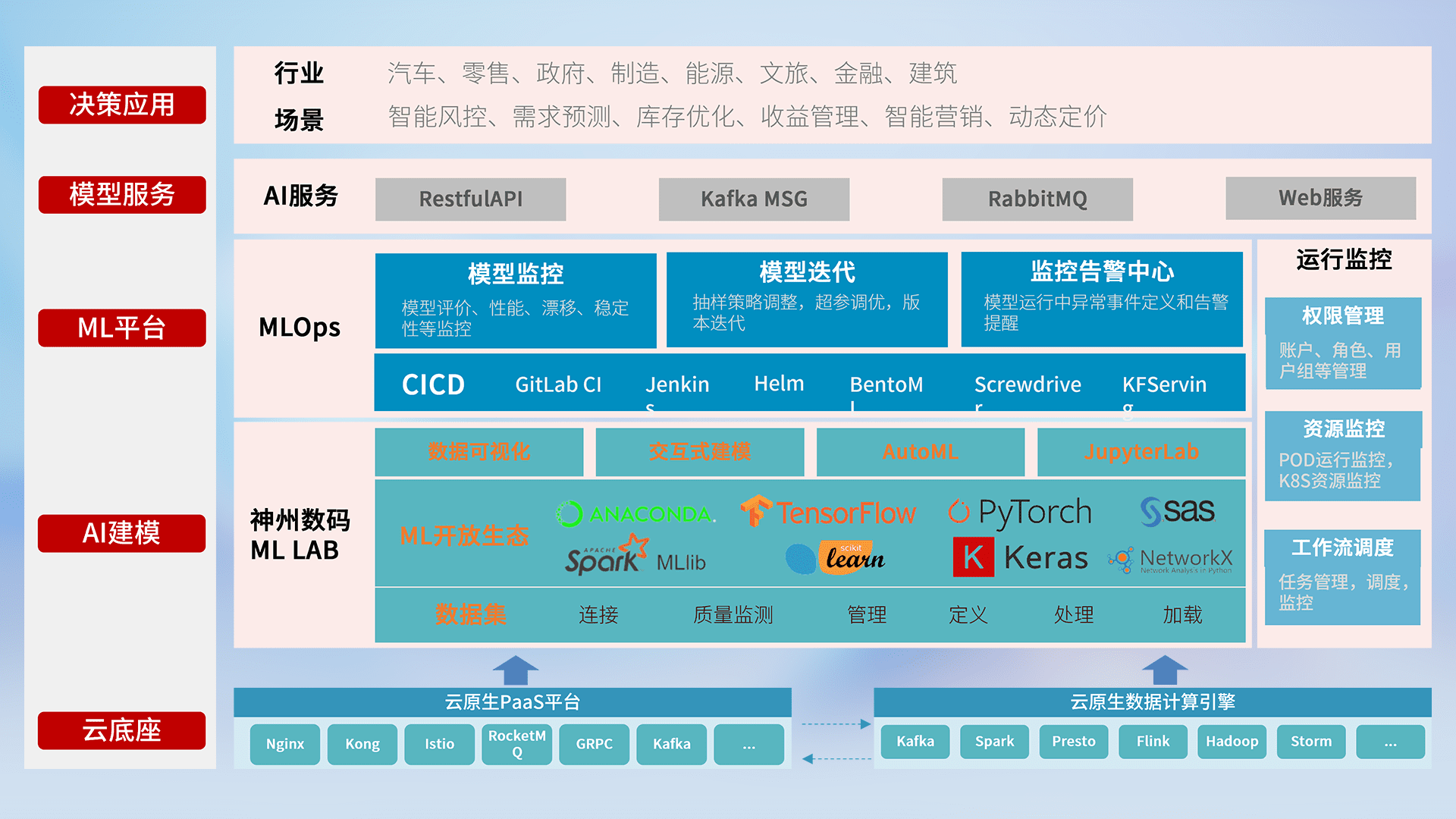 数据+模型双引擎驱动,,,面向智能服务场景,,快速灵活利用AI技术,,支持业务决策,,助力企业智能化转型破局。。。